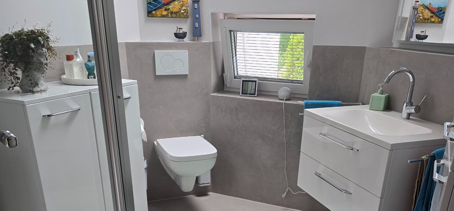 Ich verwende ausschließlich hochwertige Materialien und bei der fugenlosen Wand- und Bodenstaltung (auch im Nassbereich) ist unser Partner BetonVivet.